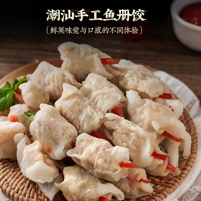 潮汕风味手工鱼皮饺鱼丸鱼卷鱼册饺子关东煮火锅麻辣烫食材商用批