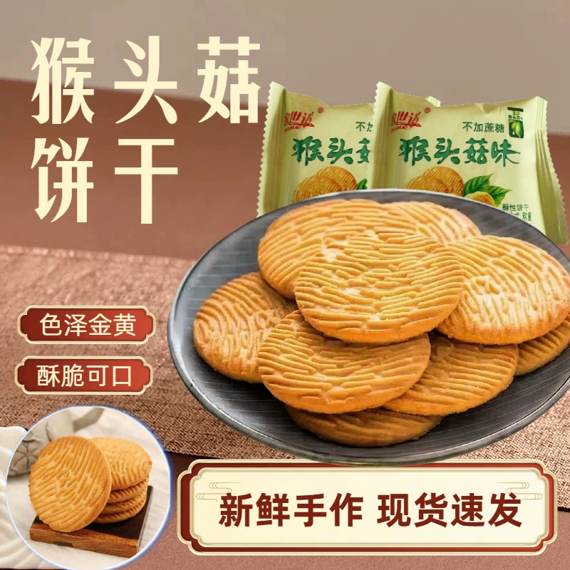 猴头菇饼干无蔗糖添加粗粮饼干早餐代餐独立包装糖人零食食品