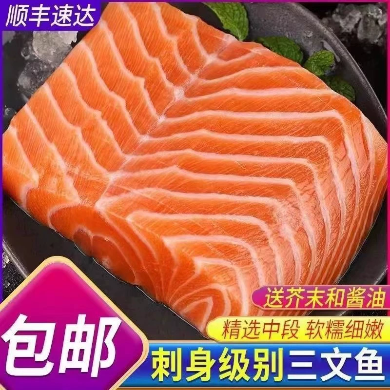 【顺丰】新疆三文鱼中段500g现切新鲜鲜活正宗生鱼片冰冻即食