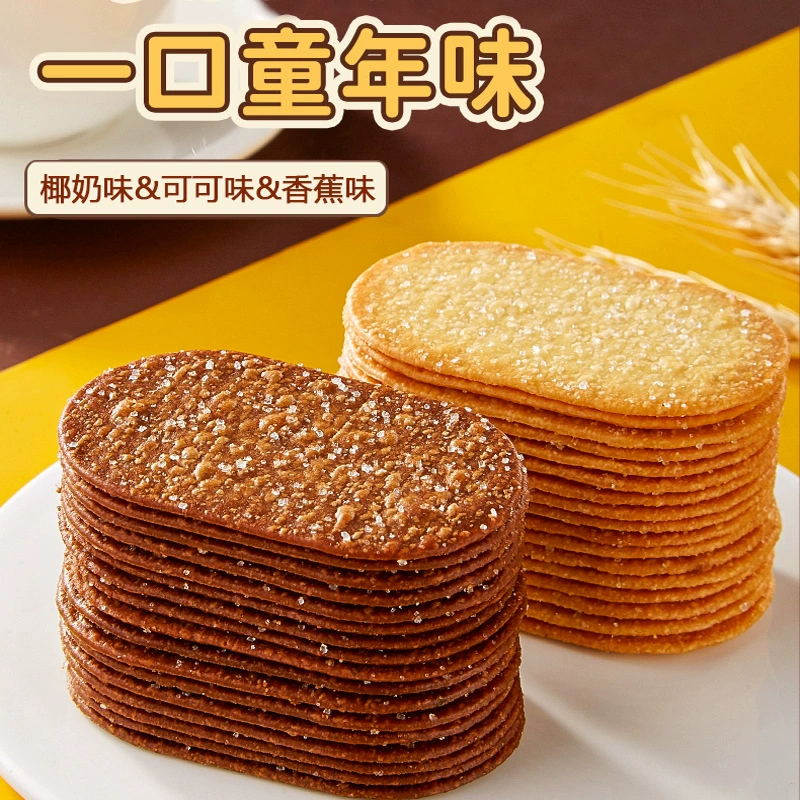 椰香椰奶/可可味薄脆饼干网红零食充饥解馋休闲零食整箱工厂