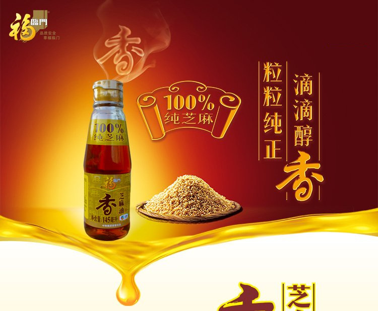 福临门纯芝麻香油145ml凉拌调味火锅油纯芝麻油香油