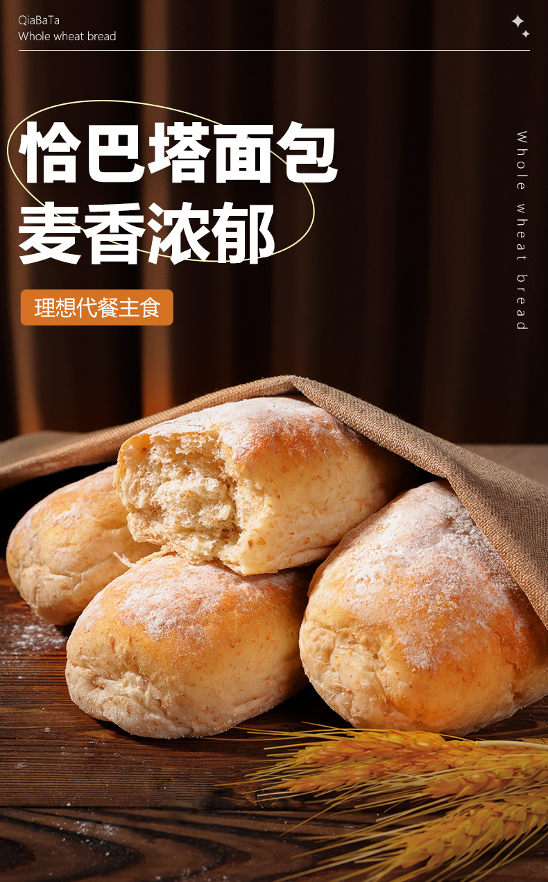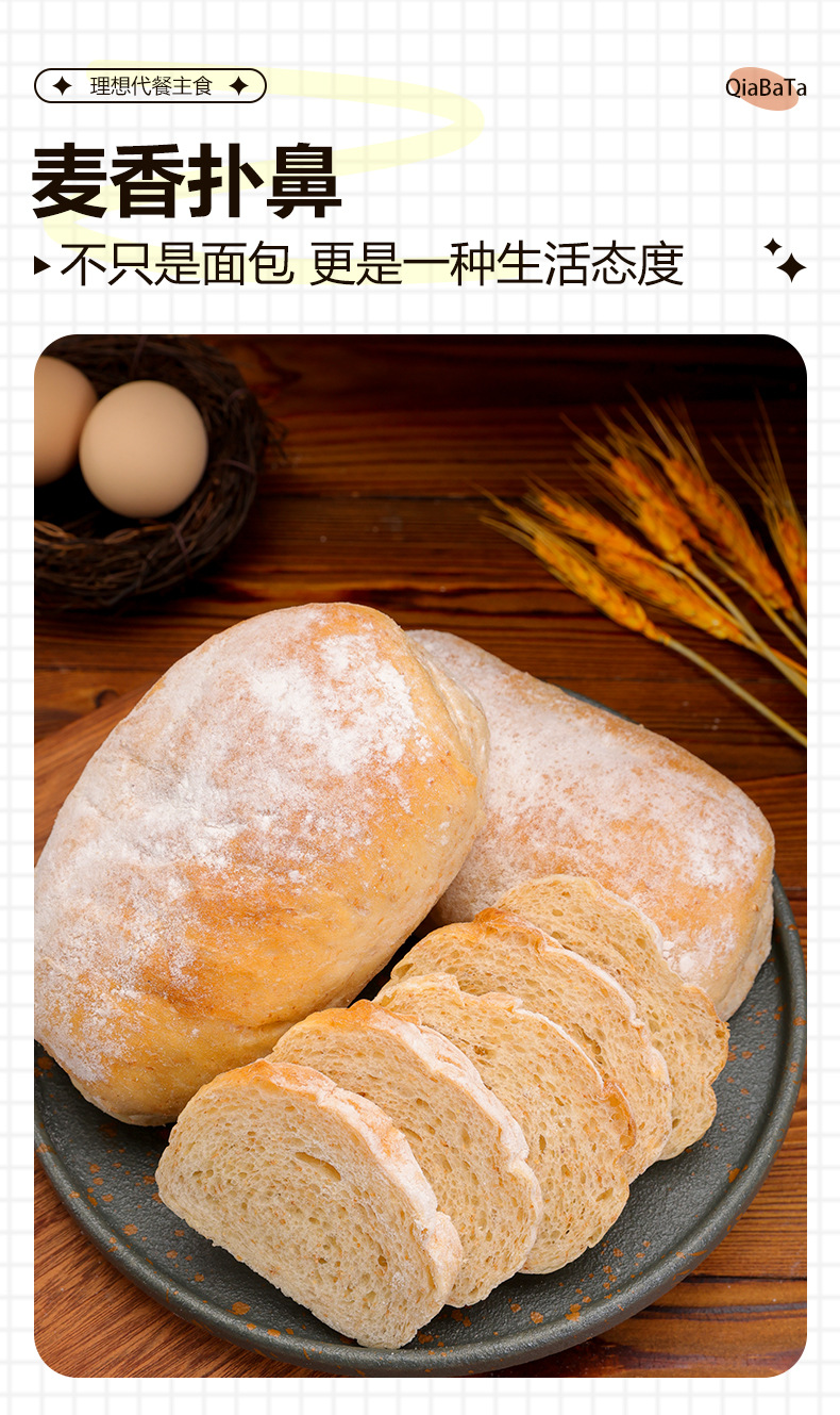 【善美源】恰巴塔面包全麦欧包代餐早餐原味软欧包麦香浓郁