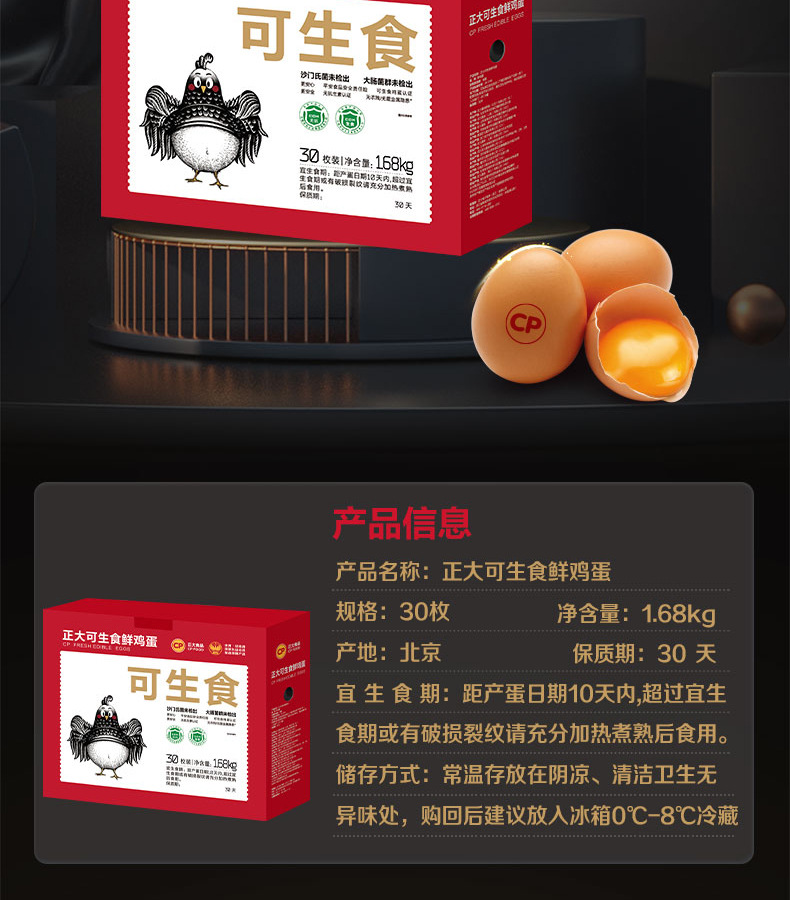正大可生食鲜鸡蛋30枚1.68kg礼盒品牌直营 无抗认证礼品盒