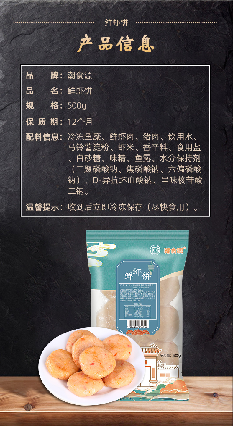 潮食源500g虾饼 茶餐厅小吃空气炸锅早餐半成品食材虾饼